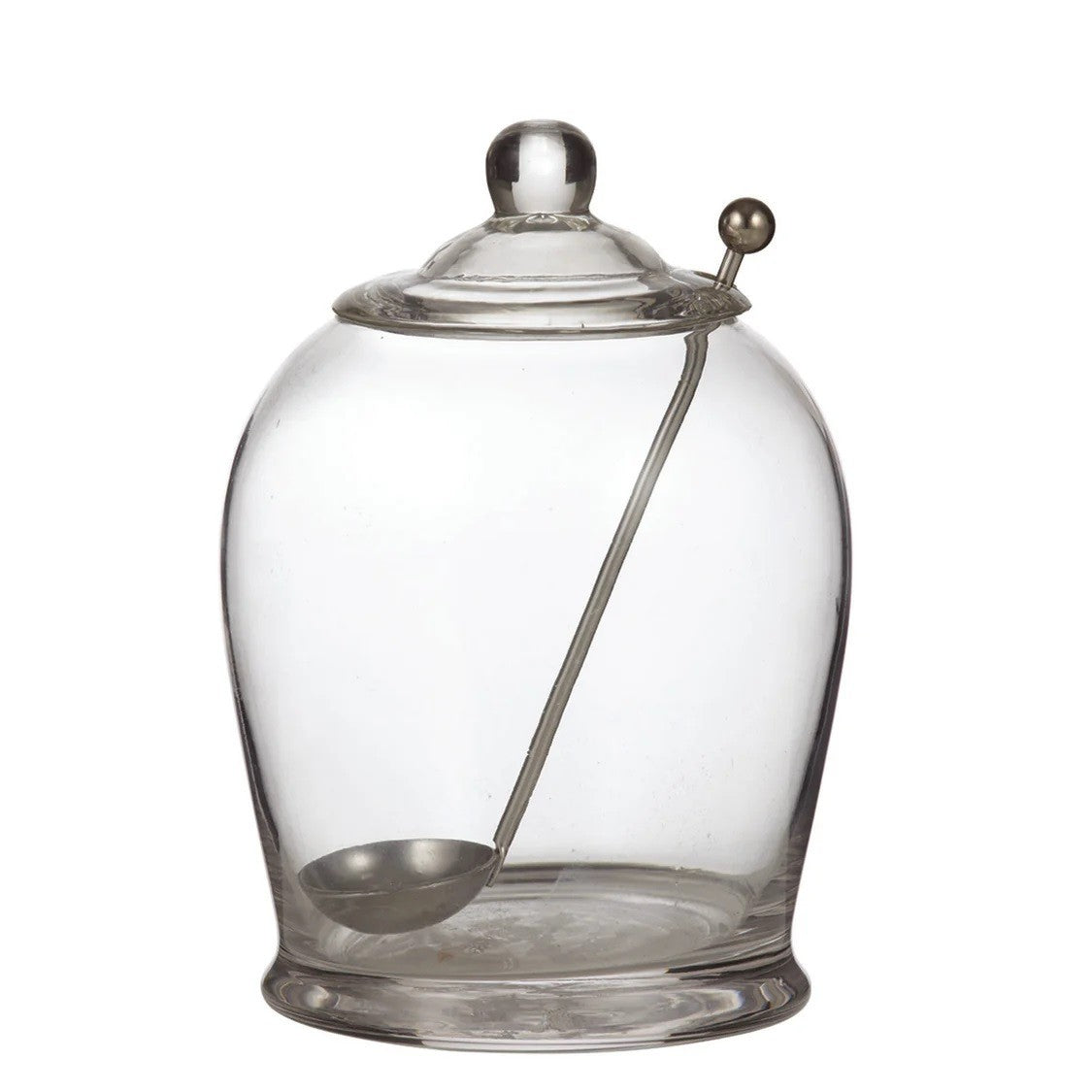 This Oliver Jar with Spoon is made from glass with a stainless-steel spoon.