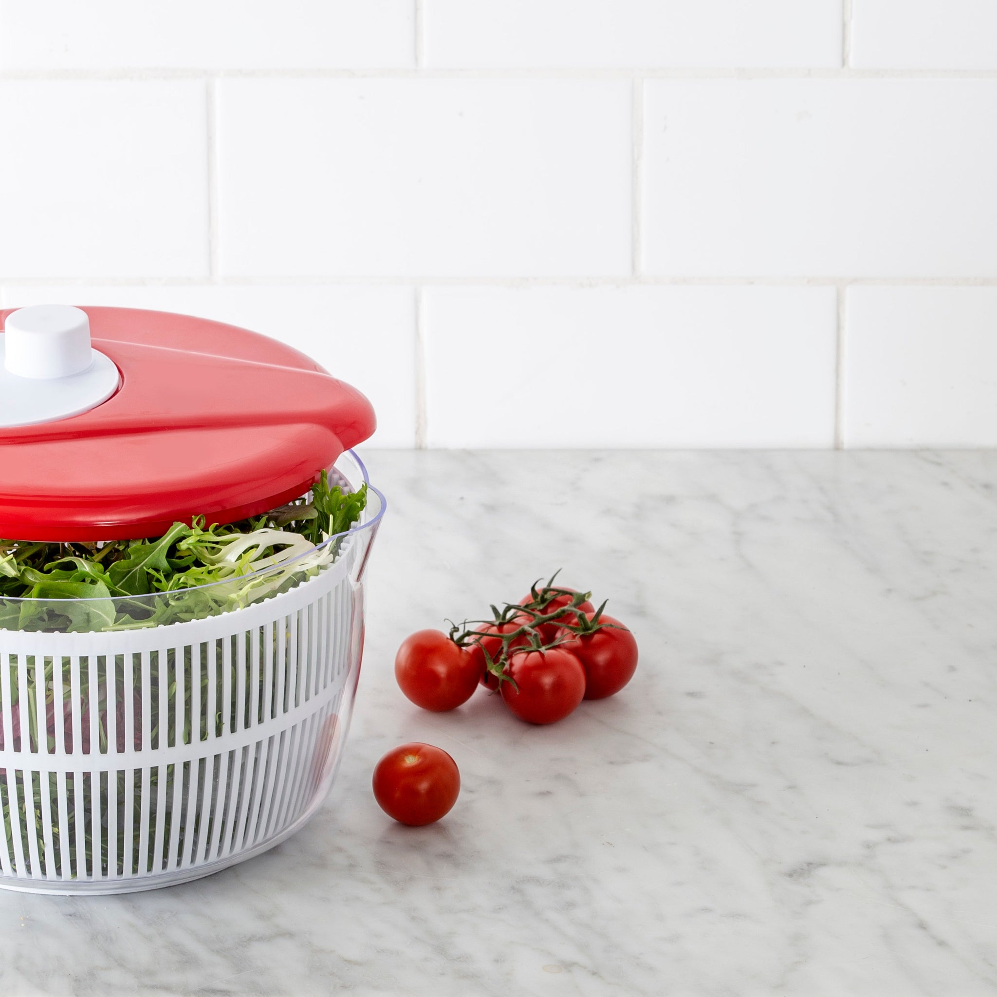 A salad spinner, also known as a salad tosser, is a kitchen tool used to wash and remove excess water from salad greens.