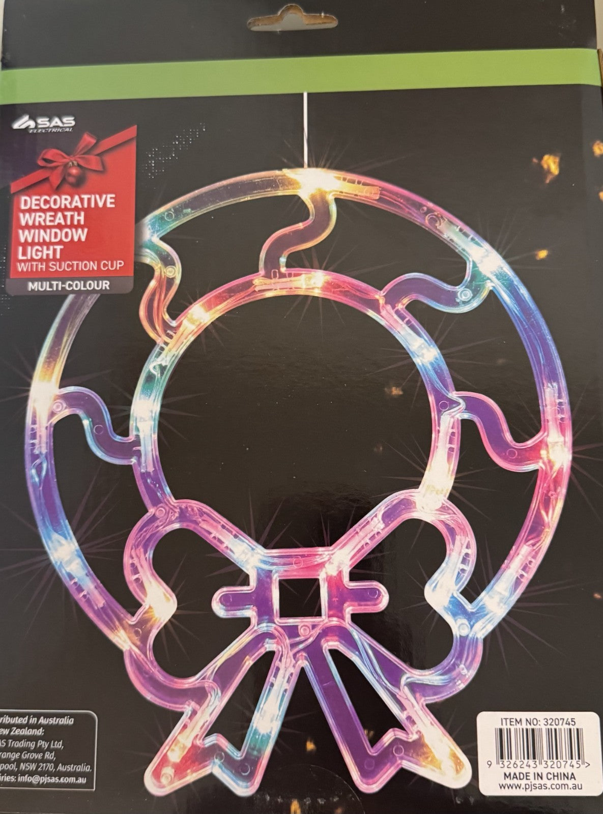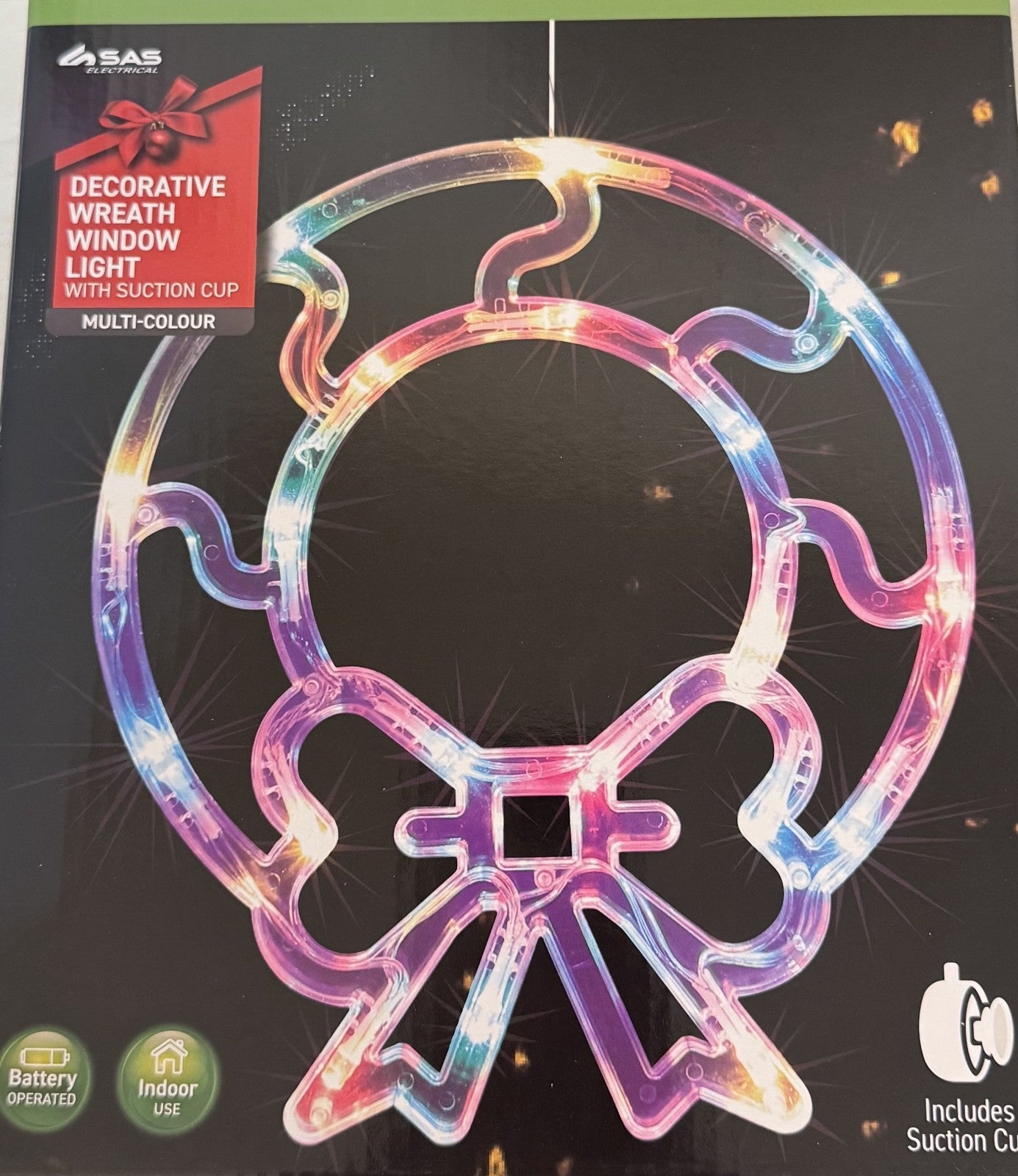 Decorative Wreath Window Light w/ Suction LED Decor Christmas Multi Colour