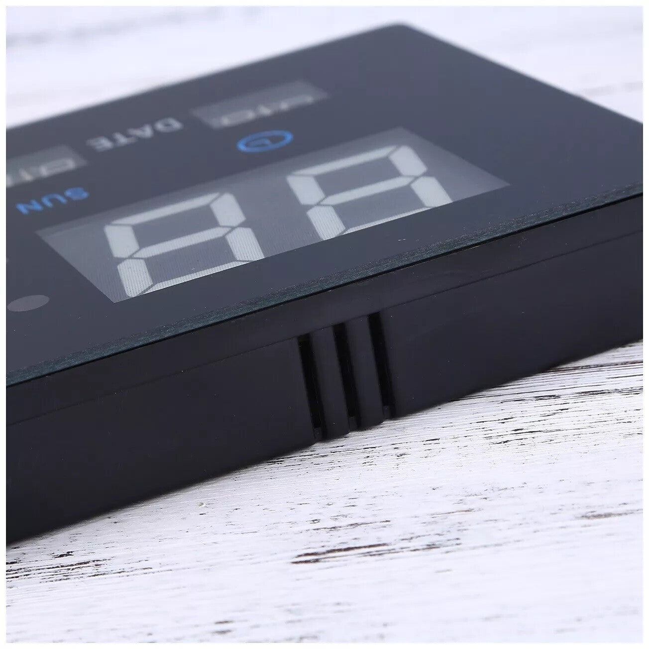 12/24 hour mode with calendar and temperature displayed along the bottom