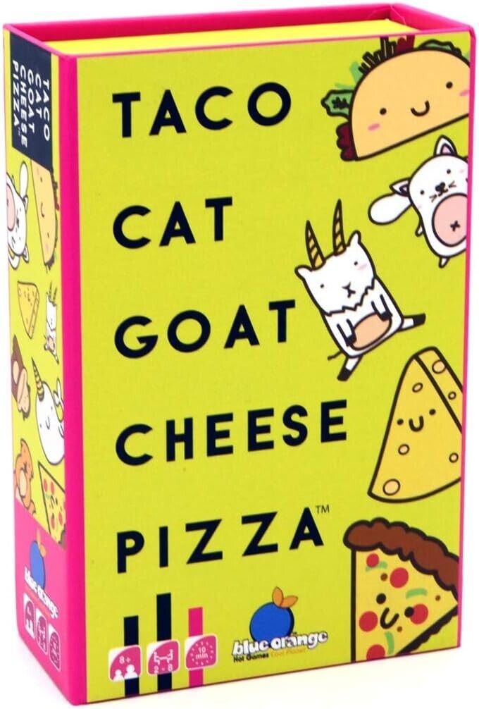Creative Conceptions Taco Cat Goat Cheese Pizza is as unique as its name. It is a power packed quick and simple punk party game. A classic game that can be played anytime, anywhere. This is a high octane rowdy cousin to slap jack and Irish snap and it is filled to the brim with hand slapping mayhem.