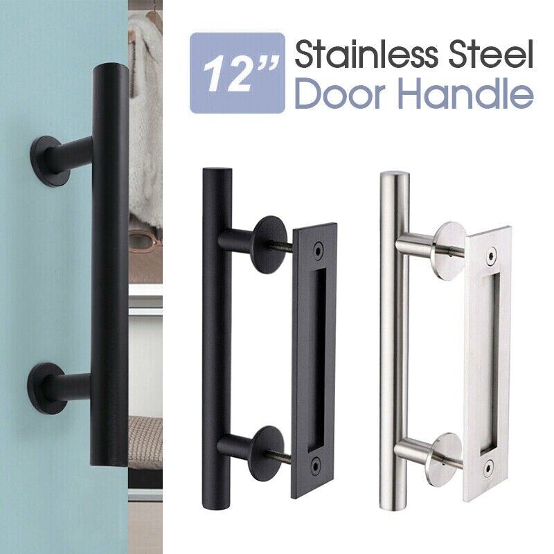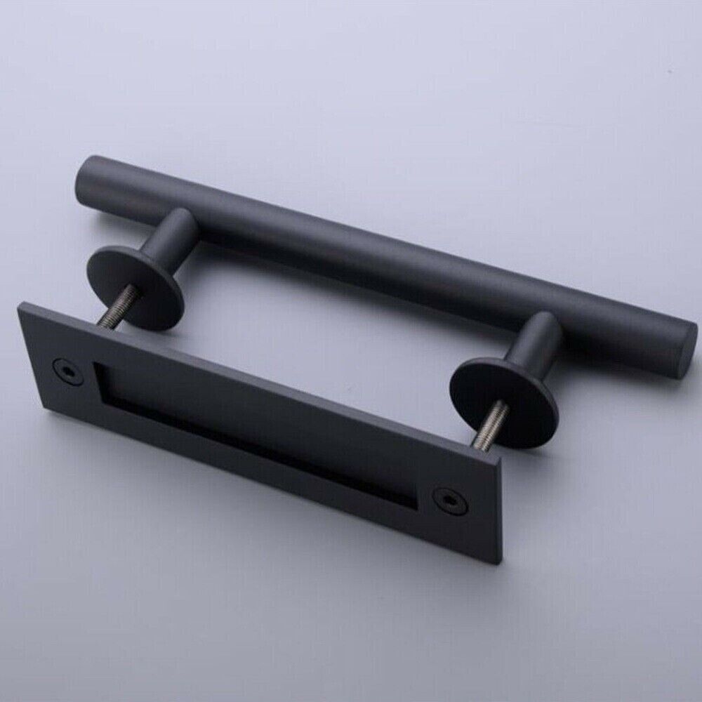 Door Handle Sliding Flush Pull 12" Barn Wood Door Gate Stainless Steel - Black