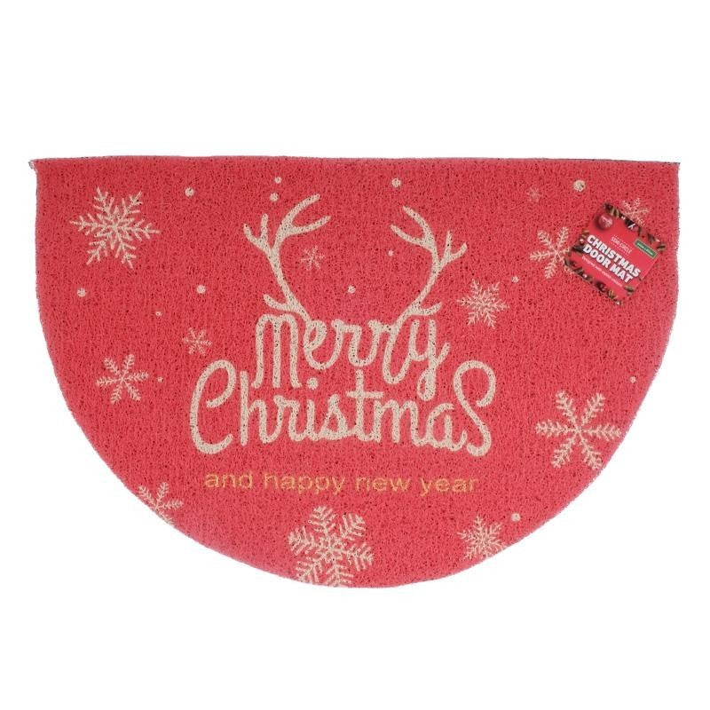 Door Mat Semi Circle Christmas Floor Carpet Rug PVC Decoration 40x60cm Red