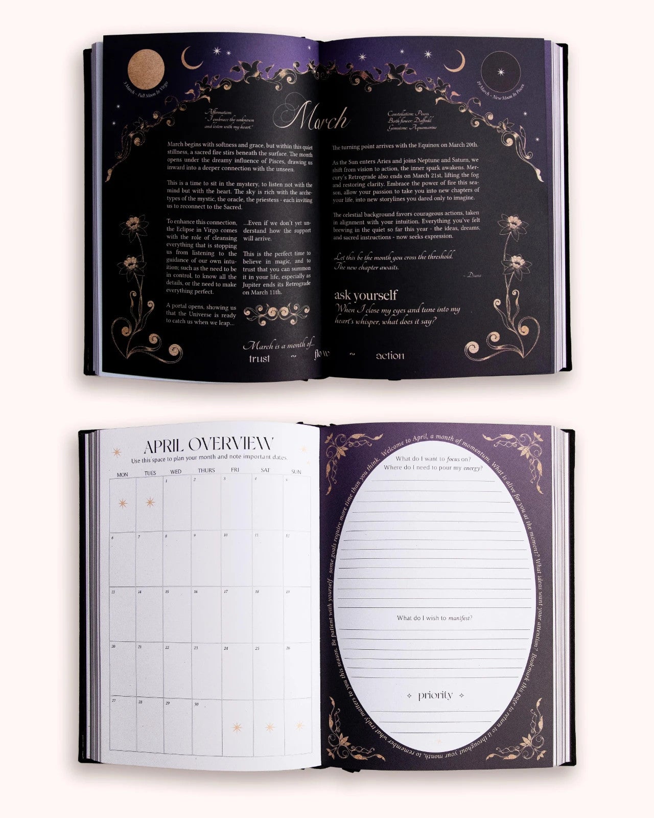 A diary with a focus on mindfulness, astrology, gratitude, intention setting, self reflection, creativity and personal growth.
