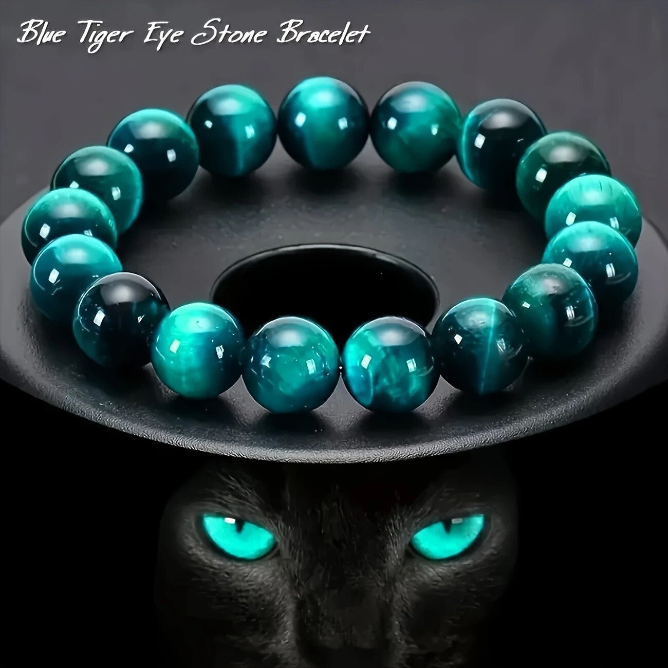 Elegant Blue Tiger Eye Beads Charm Bracelet Protection Jewelry Gift
