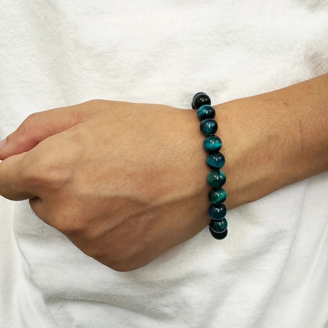 Crafted with blue tiger beads, known for their calming and protective properties, this bracelet exudes confidence and inner strength.