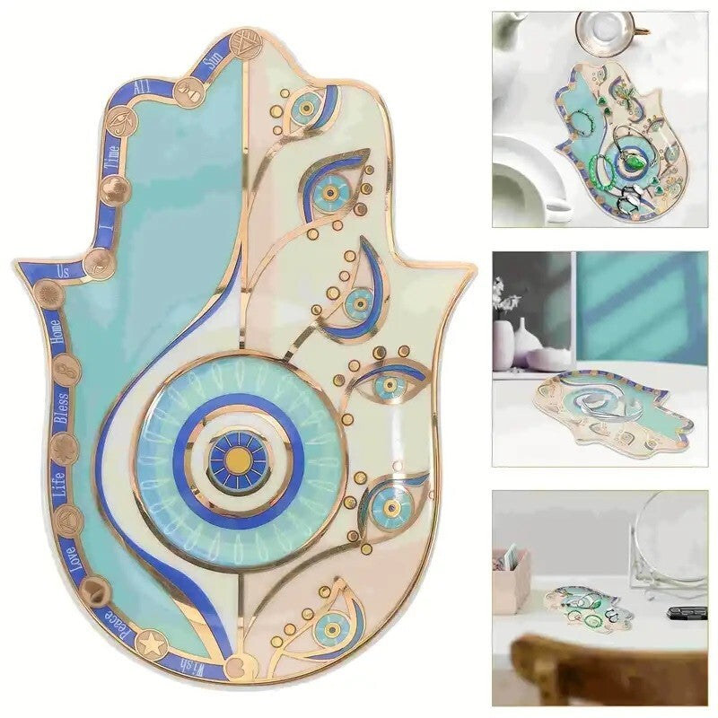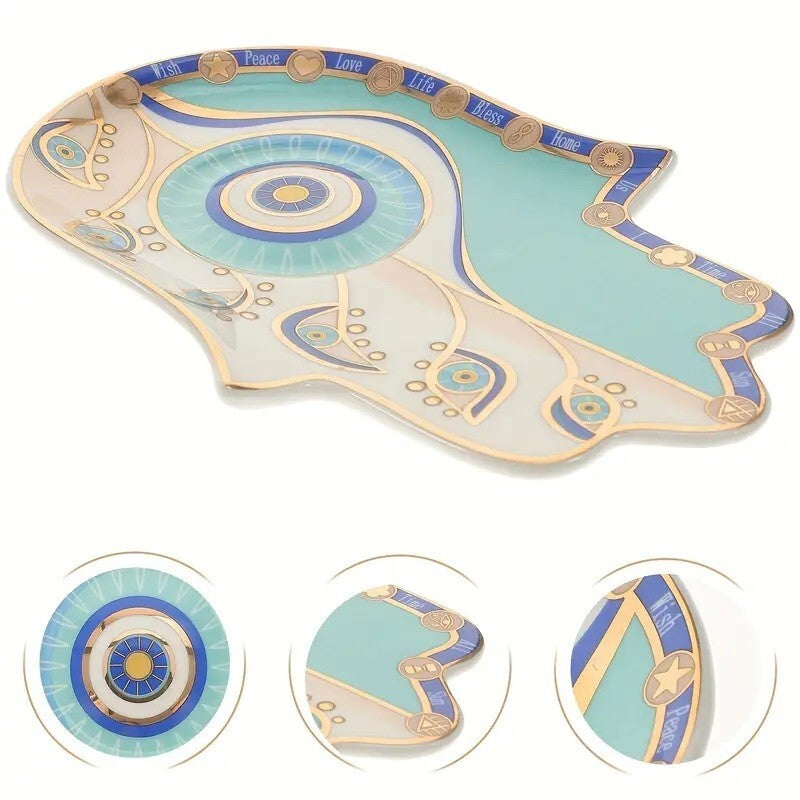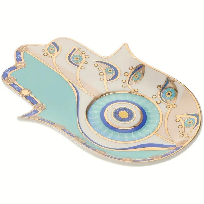 Hamsa Trinket Dish Ring Dish Ceramic Evil Eye Trinket Plate Bowl, this beautiful and perfect gift to send to a loved one, for a birthday, a family celebration or just to let someone know you are thinking of them.