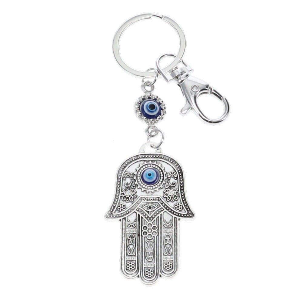 Package Includes: 1pc Keychain Evil Eye - Hamsa Hand Silver
