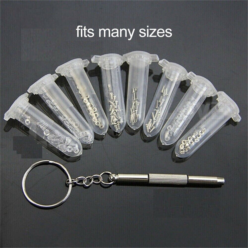 For your watch jewellery or eyeglasses repair, there is no universal screw or nut, but the good news is that the kit contains many, many tiny screws and nuts that most likely have the one you need, containing everything you need for minor repairs while travelling, camping, at work or at home.