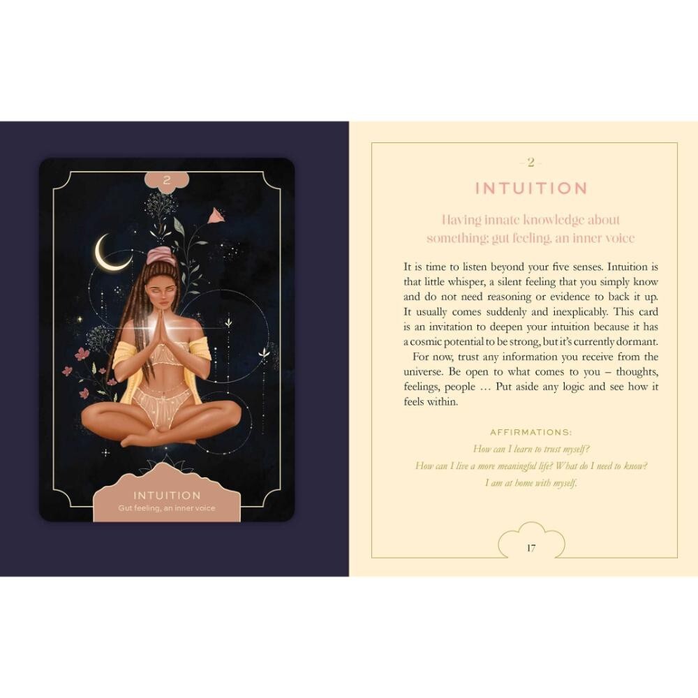 These 36 beautiful cards will help you strengthen your intuition and increase your self-compassion, feminine wisdom and creativity. It will also help you answer your deepest questions.
