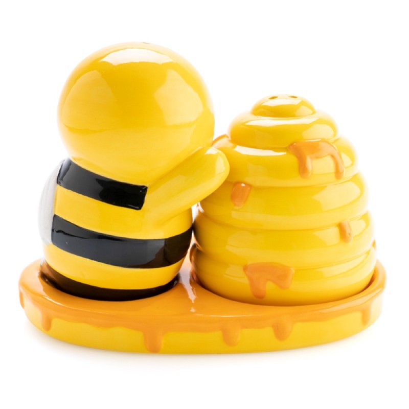 - Un-bee-lievably cute salt and pepper set shaped like a bee and beehive
