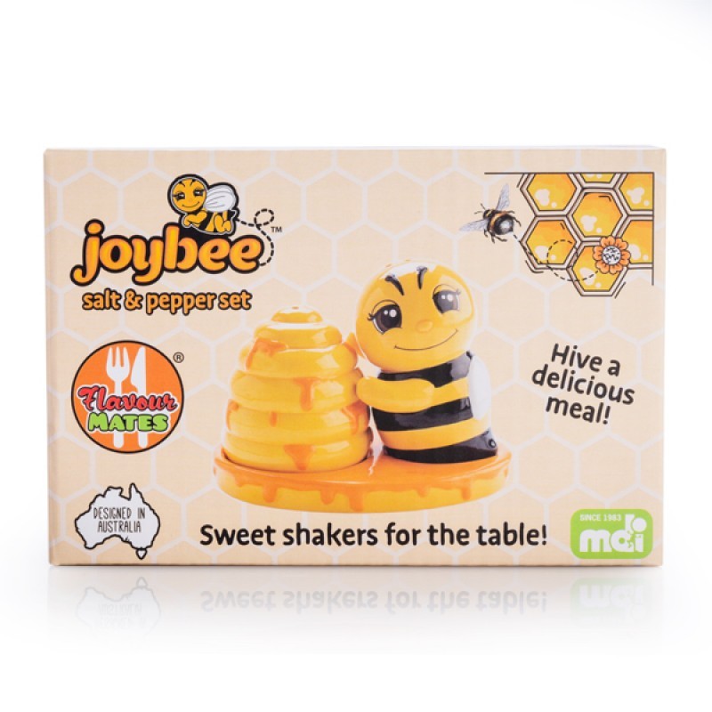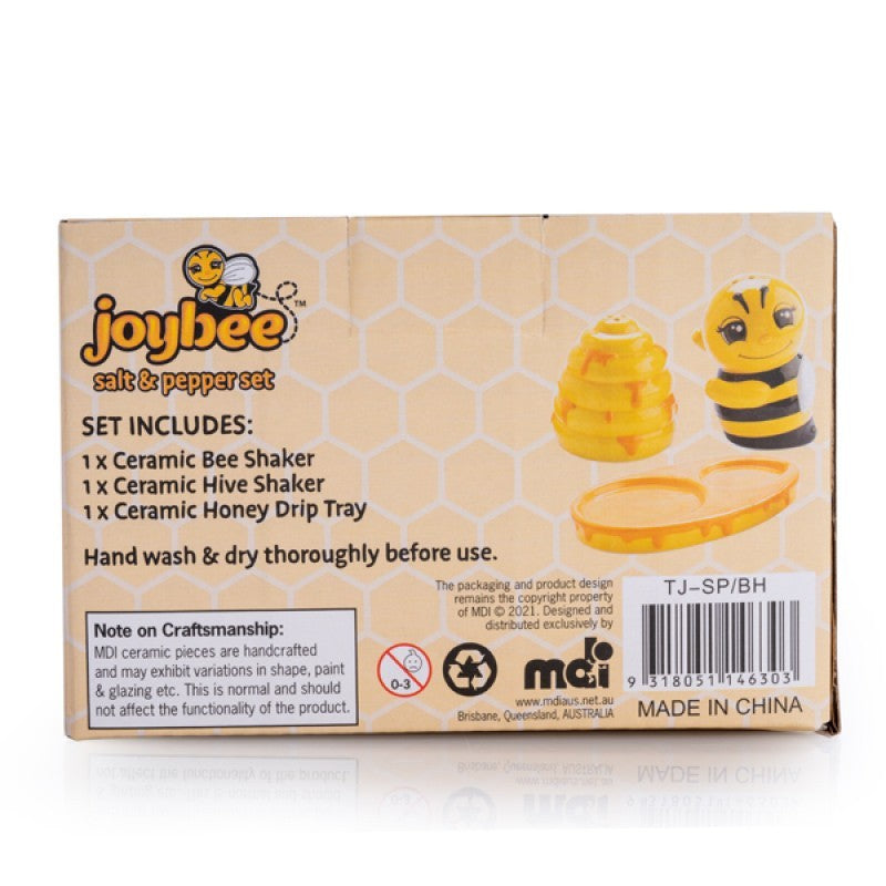 Get the flavour balance in your meal just right with the JoyBee Salt & Pepper Set! Each ceramic shaker features its own design so you can easily tell salt and pepper apart. One shaker is shaped as a beehive with dripping honey and the other is shaped as an adorable bumble bee. Makes a sweet dining table addition, collector's item, or gift!
