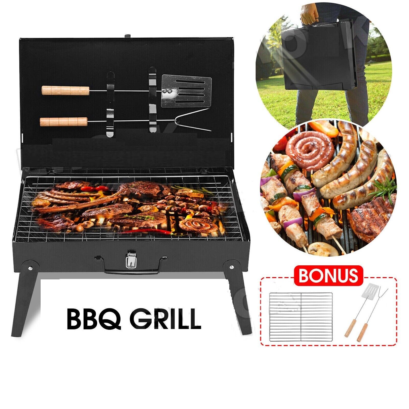 Foldable Portable BBQ Grill Charcoal Hibachi Barbecue Camping Roaster Picnic Set