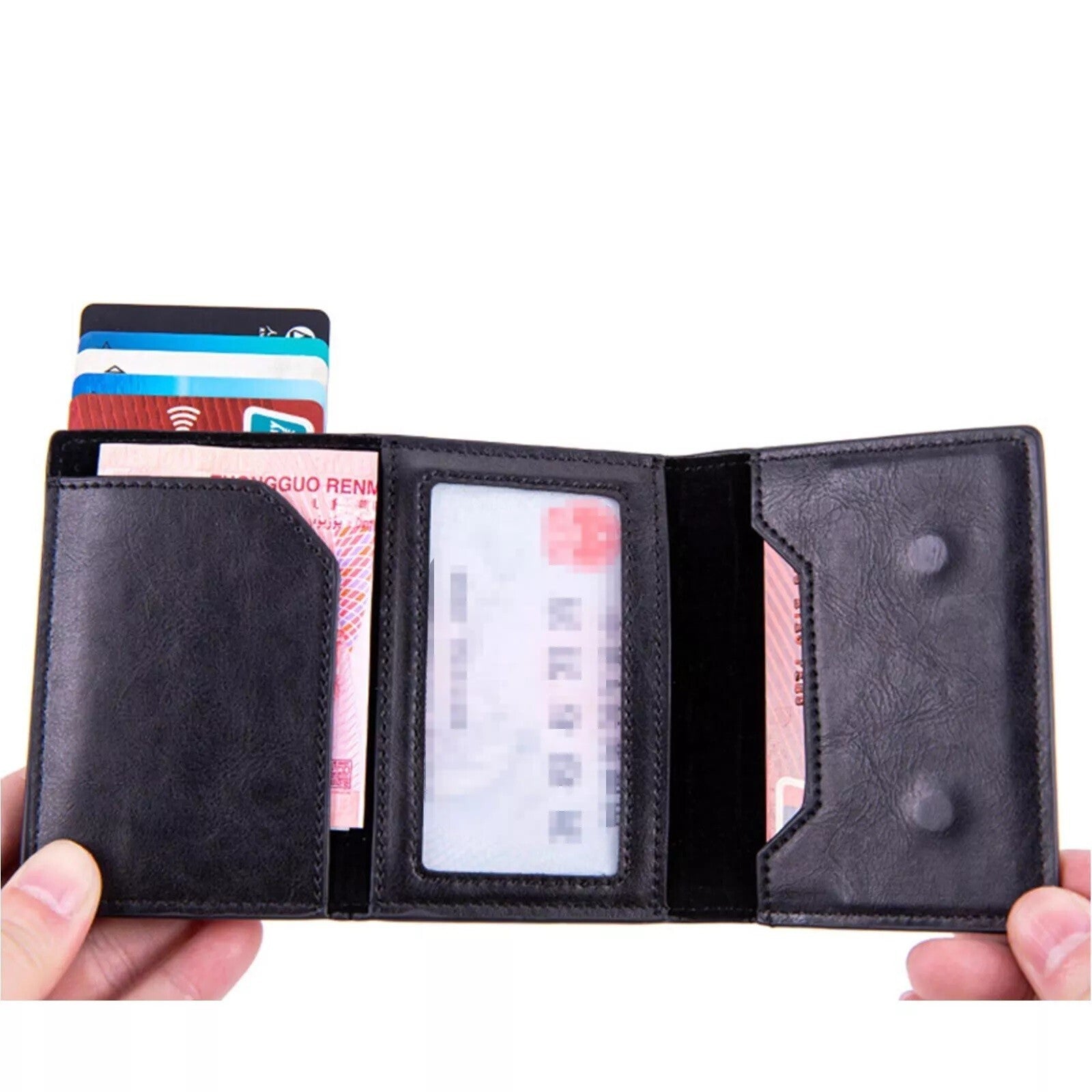 The airtag Smart Wallet pop-up credit card system is very cool, it only takes one finger to easily take the card, it saves you a lot of time for paying. Holds 5 cards, perfect for business cards, credit cards, driver's licenses, and more.