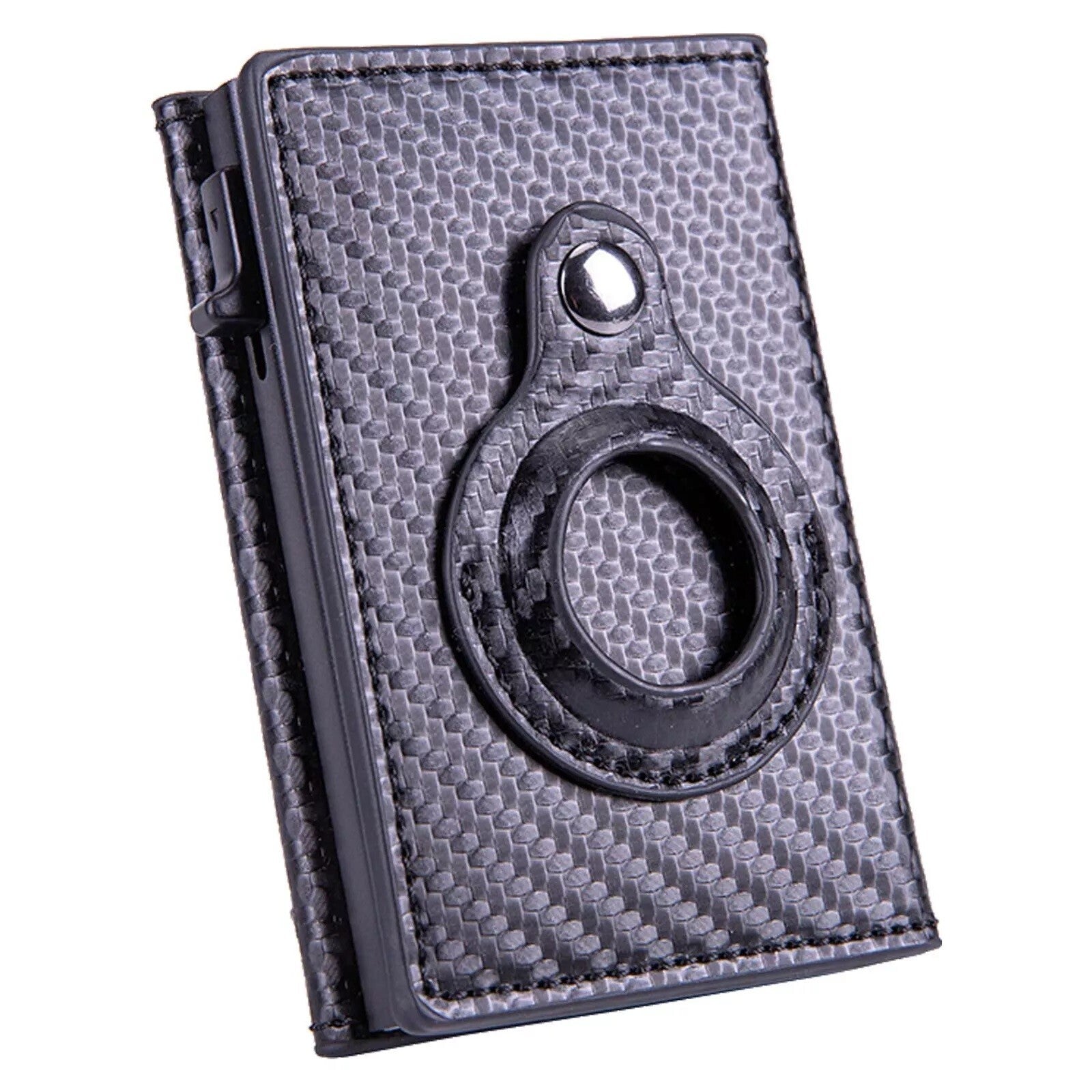 For Airtag Wallet PU Leather Credit Card Money Case Cover Carbon Fiber Black