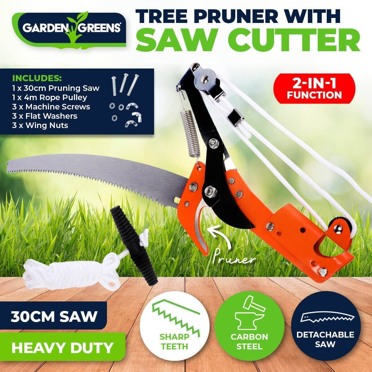 Garden Greens 2-In-1 Function Tree Pruner With Detachable Saw & Rope Pulley