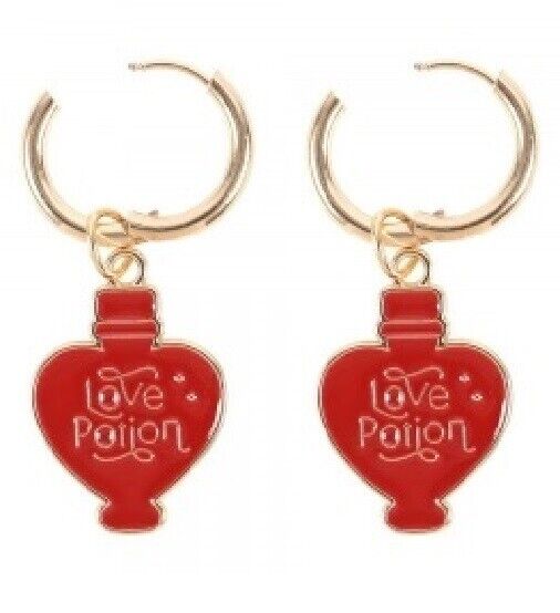 This pair of gold-toned earring features enamel love potion charms that are sure to catch someone's eye. Nickel-free.