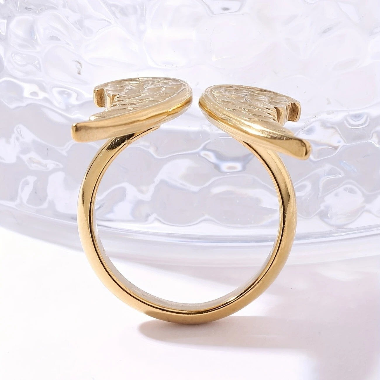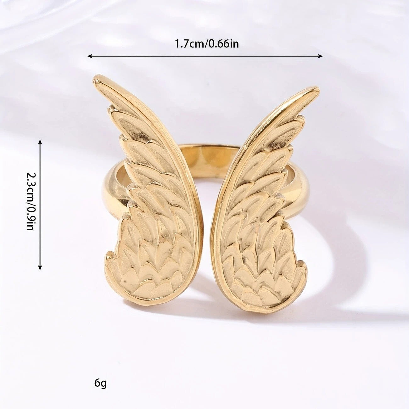 Package Includes 1pc Golden Colour Angel Wing Shape Stainless Steel Open Ring
