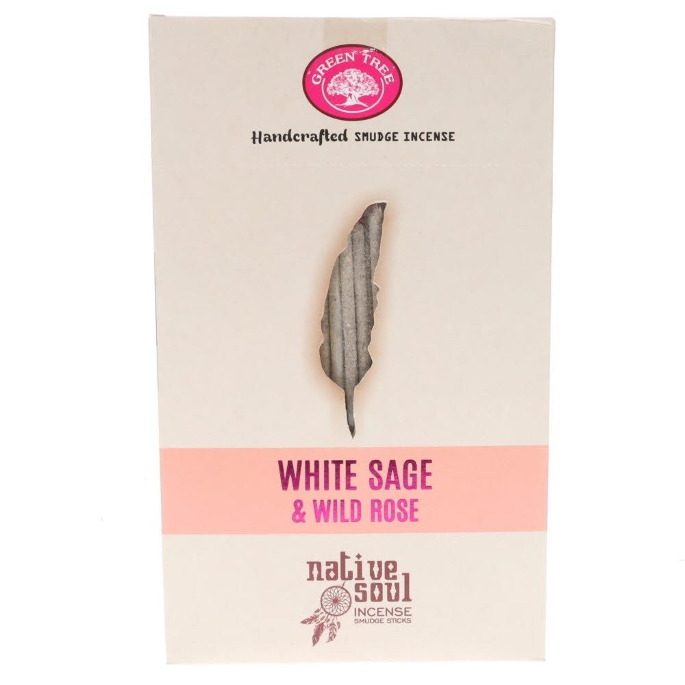 Green Tree White Sage & Wild Rose Native Soul Incense Smudge Sticks 1 Box