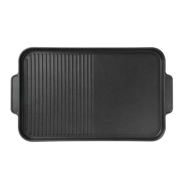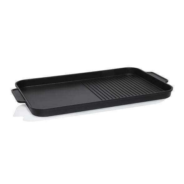 Grill up a feast on our giant grill plate. 44cm x 27cm cooking area spanning across two burners. Ribbed and flat cooking surfaces for different foods. The specialised dual induction plates will delight owners of induction cooktops.