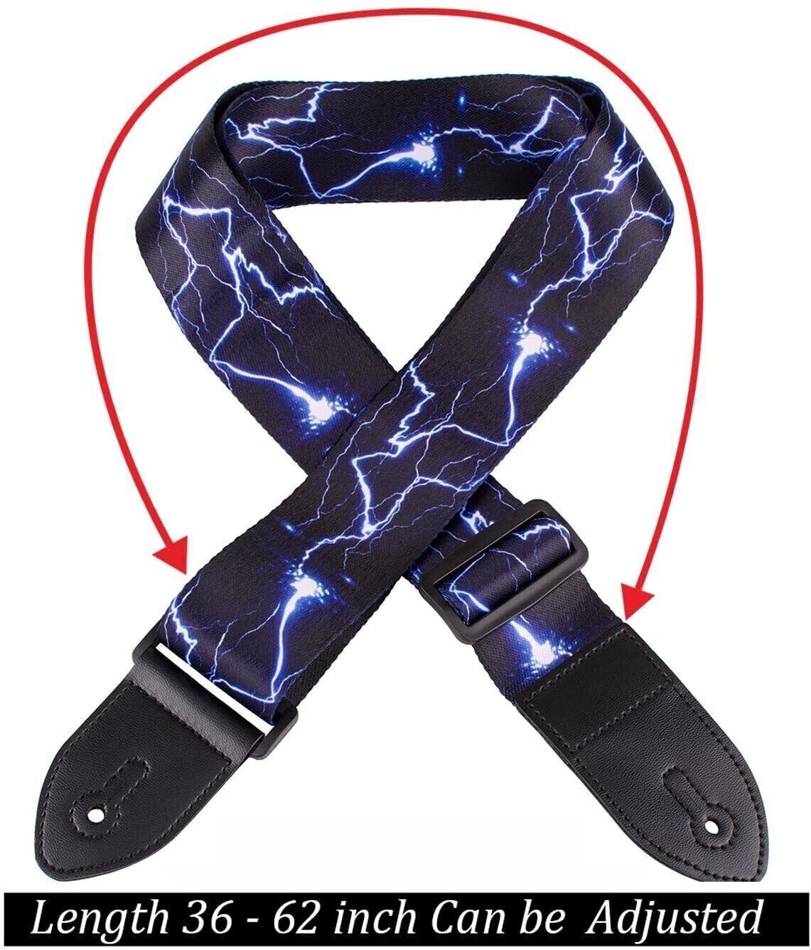 Electric Lightening Bolt Guitar Strap.Adjustable. Colour:Blue