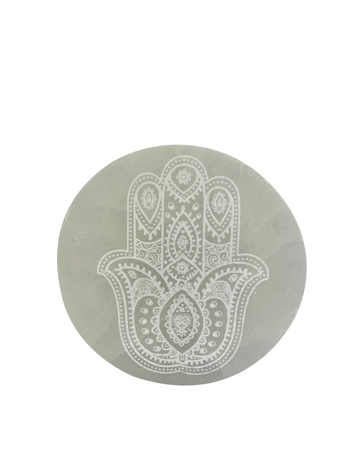 Hamsa Hand Selenite Charging Round Display Plate Crystals Jewelry Dish Holder