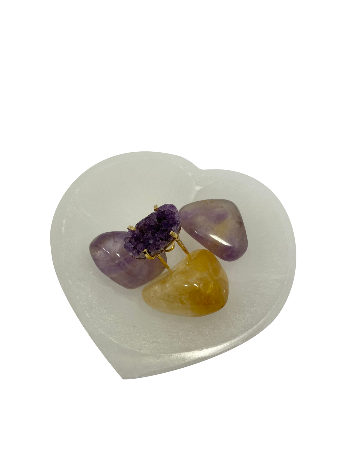 Heart Shape Selenite Charging Display Bowl Crystals Jewelry Dish Holder