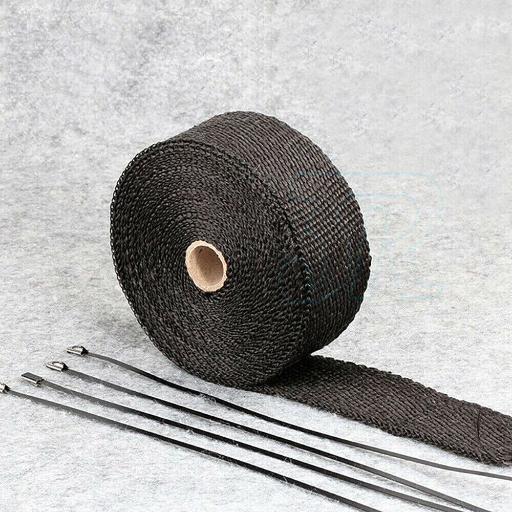 Heat Resistant 2000F Exhaust Wrap Black 15M*50mm + 10 Stainless Steel Ties