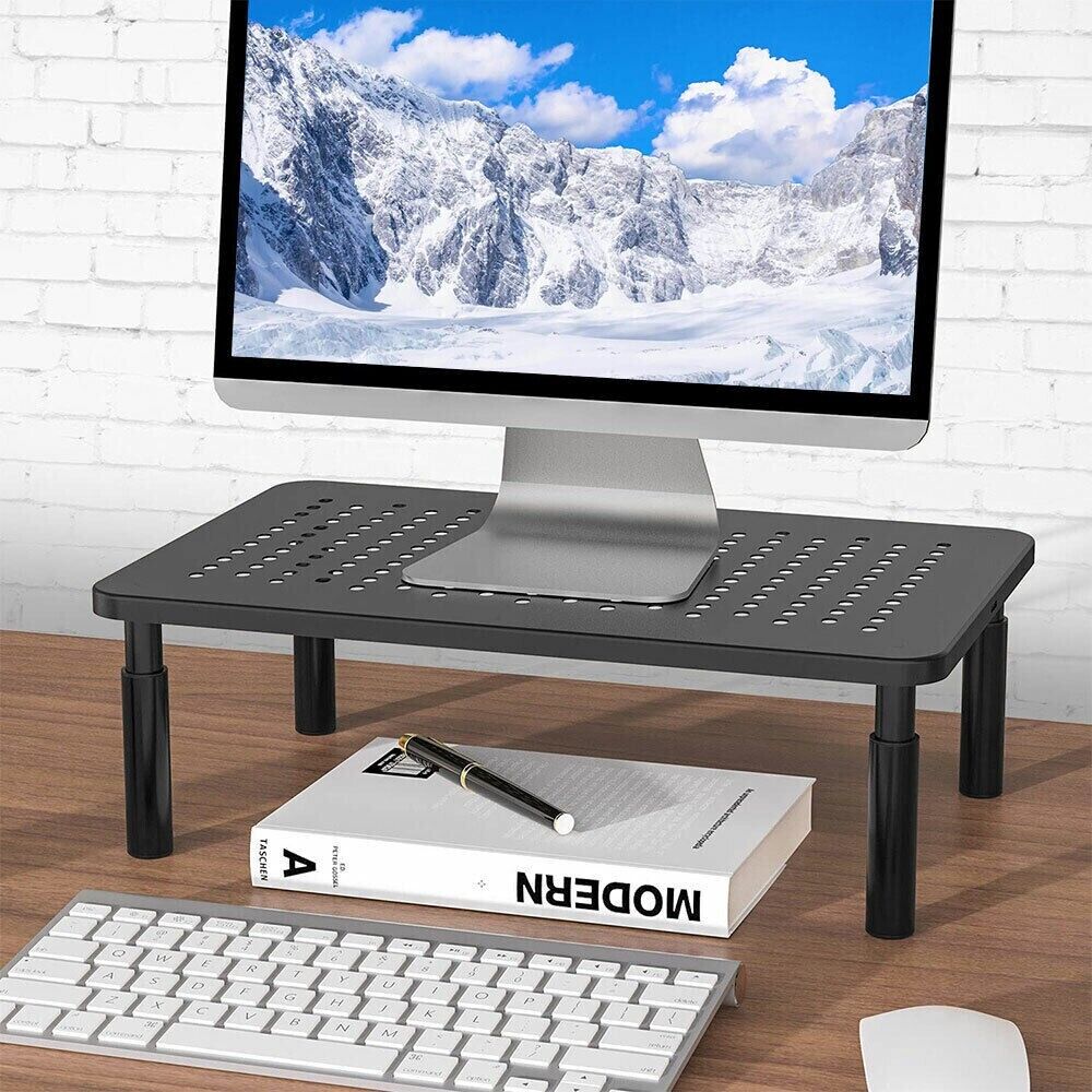 - Increased prevents overheating - our adjustable monitor riser is made of power coated steel with a perforated mesh hole platform that improves flow going towards your device. The holes Also help to prevent dreaded overheating and keep your computer cool and in working condition
