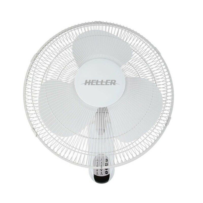 Heller Wall Fan 3 Speed Oscillating Tilt Adjustable Remote Control White -40cm