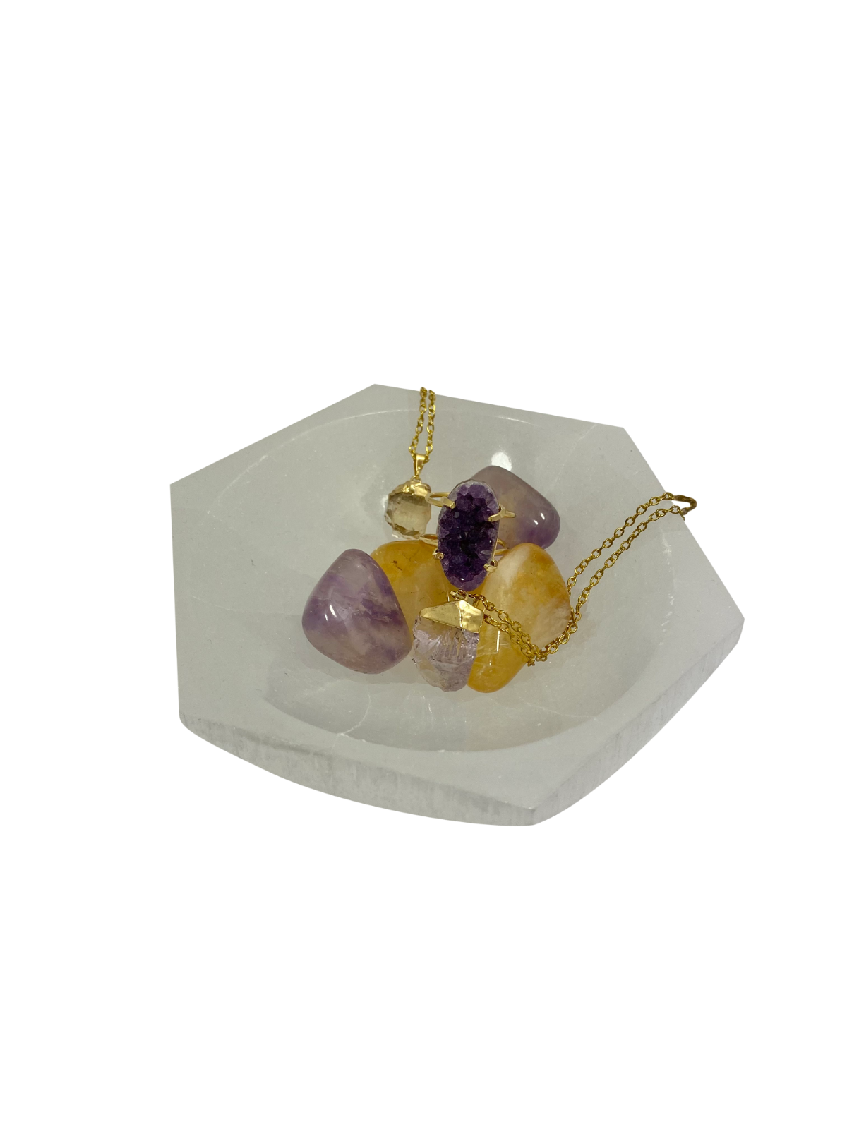 Hexagonal Shape Selenite Charging Display Bowl Crystals Jewelry Dish Holder