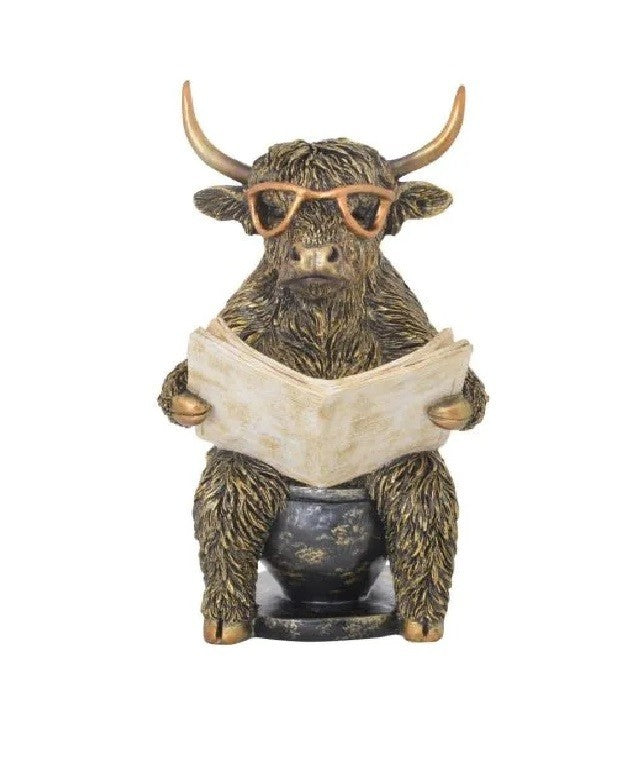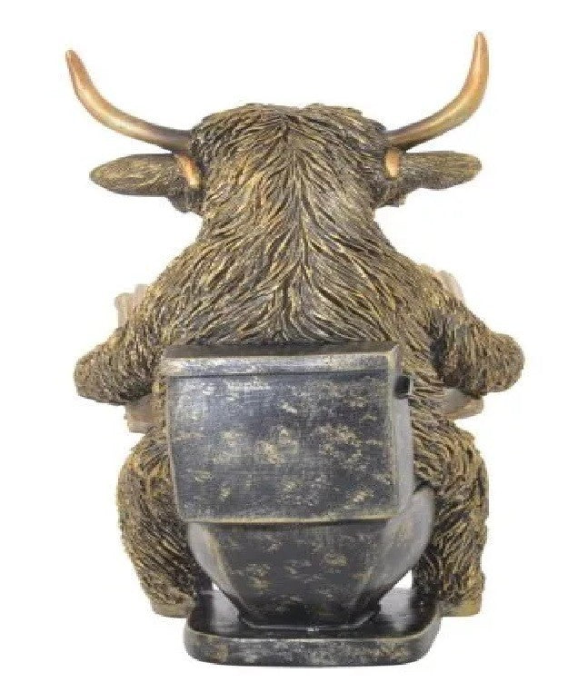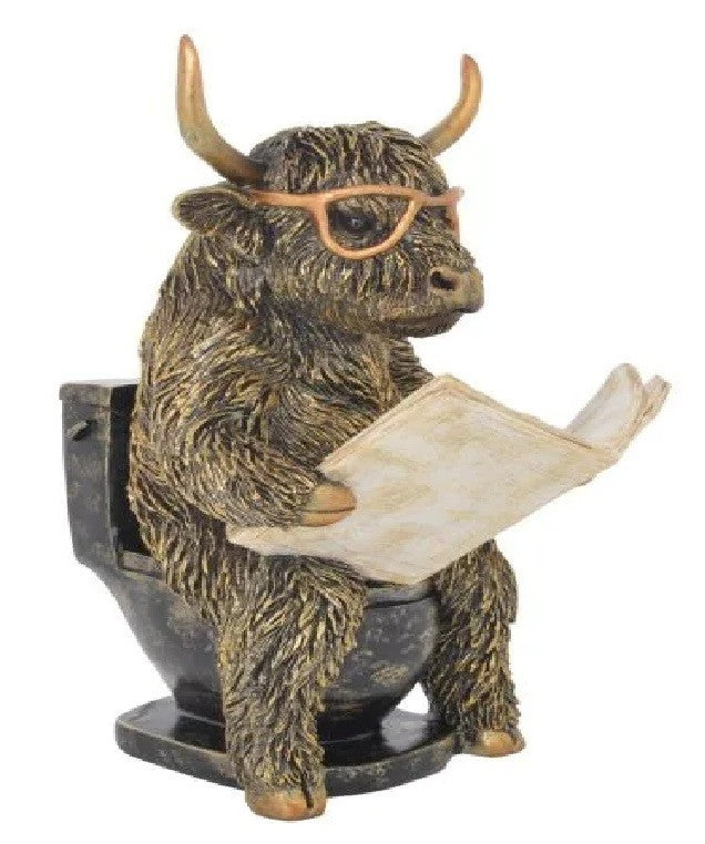 Highland Cool Cow Loo Time Statue Adorable and charming decoration featuring a cute Highland Cow. Perfect for adding warmth and personality to your home.