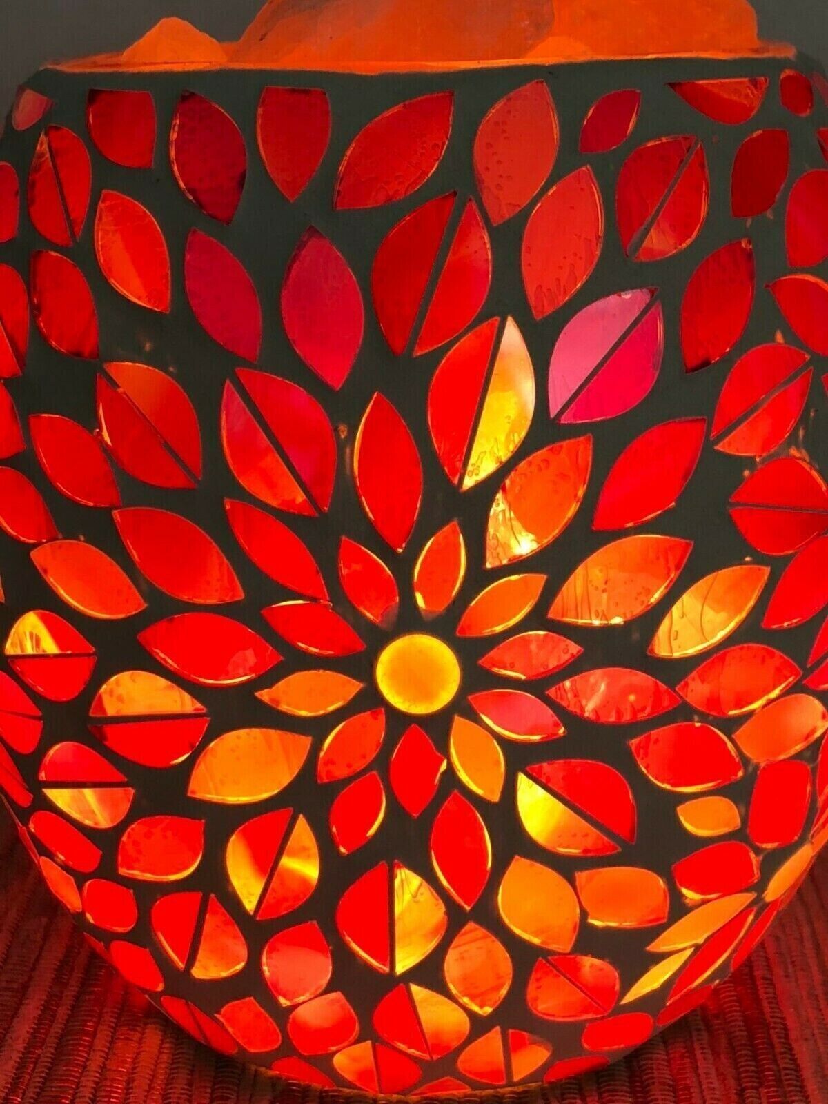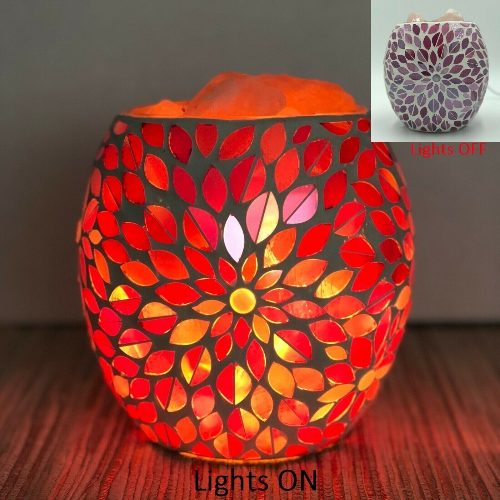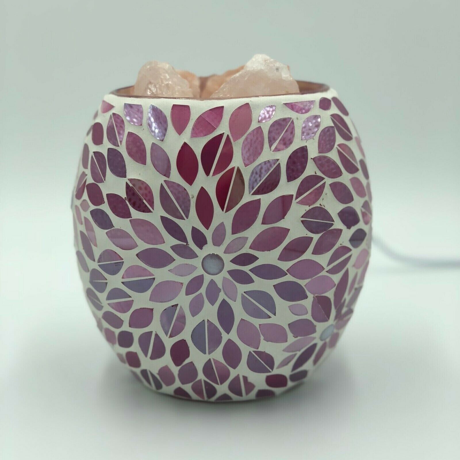 Himalayan Crystal Salt Lamp Glass Mosaic Bowl - Pink Flower