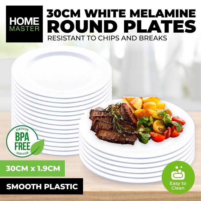 Home Master 6PCE Melamine Plates Round Lightweight Durable 30cm - White