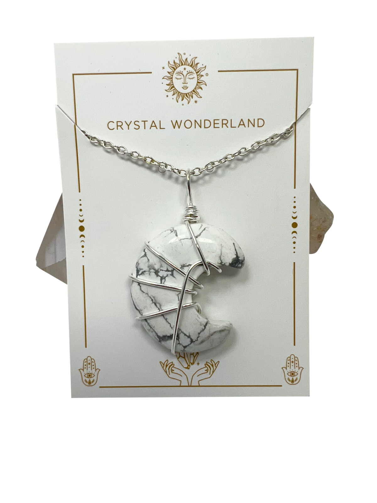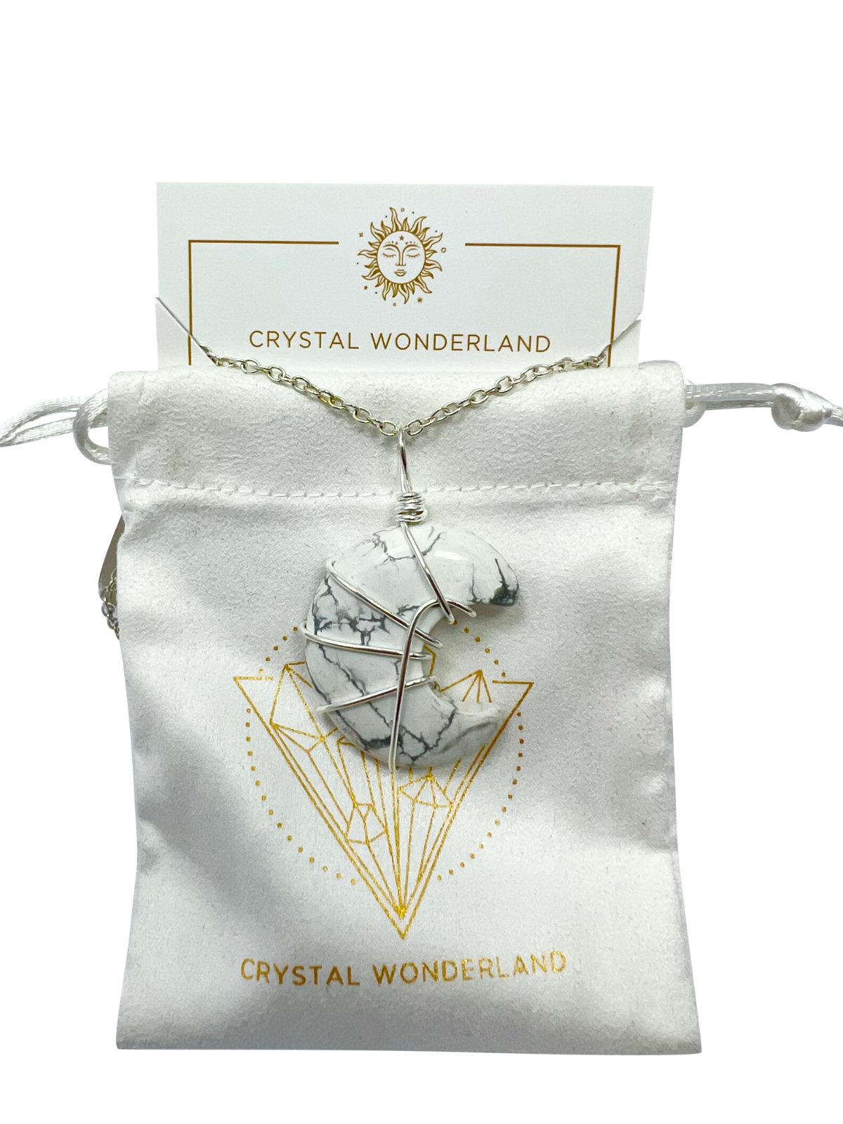 Howlite Half Moon Shape Pendant Necklace Silver Healing Polished Tumbled