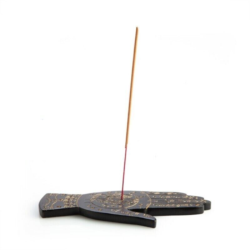 Incense Stick Burner Palmistry Holder Black Gold Hand Shape Yoga Meditation