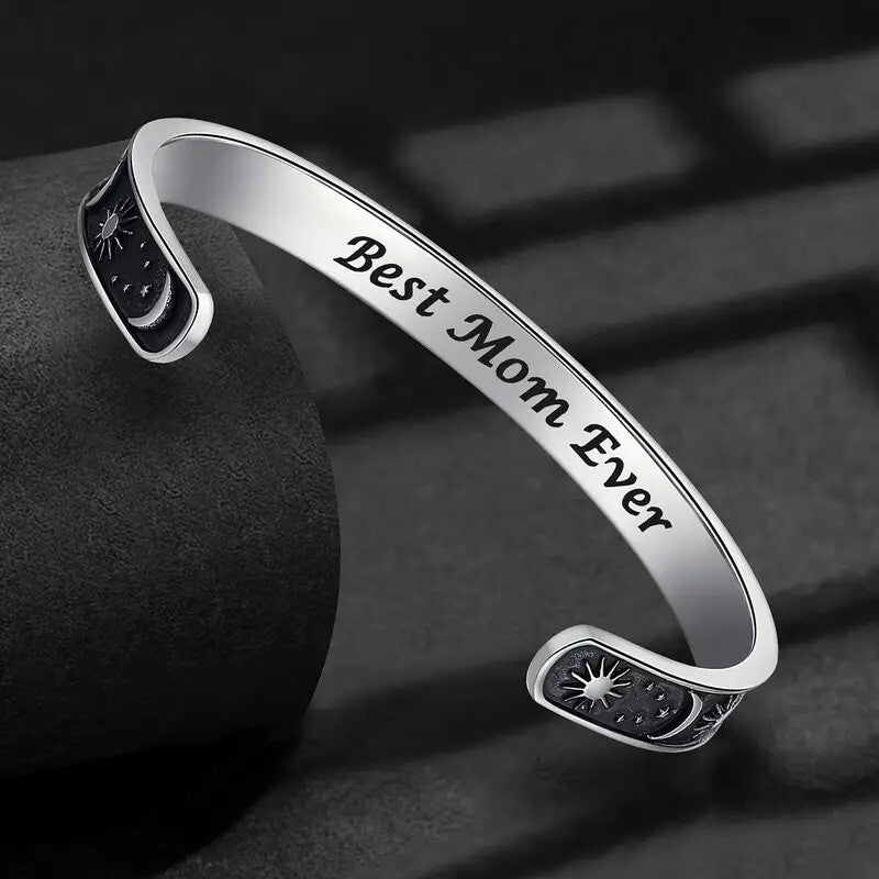 Hidden on the inside is a heartfelt engraved message: “Best Mom Ever”—a quiet reminder of how much she’s cherished. Crafted from durable stainless steel, this bracelet is both beautiful and built to last.