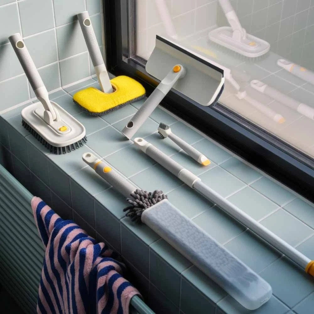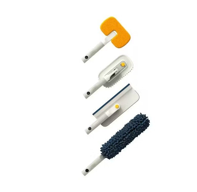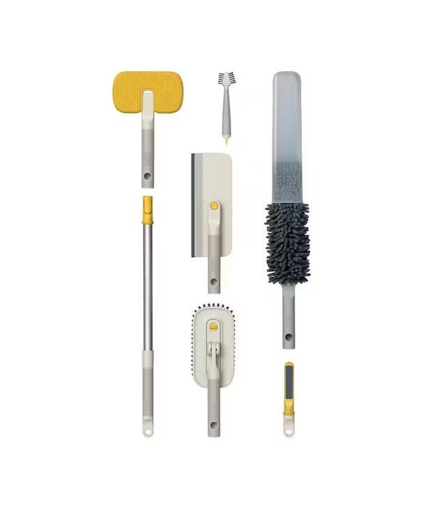 This powerful 6-piece set includes five versatile cleaning tools and a telescopic extension pole, giving you the reach and flexibility to clean every surface—from windows and tiles to tight corners and high-up dust.