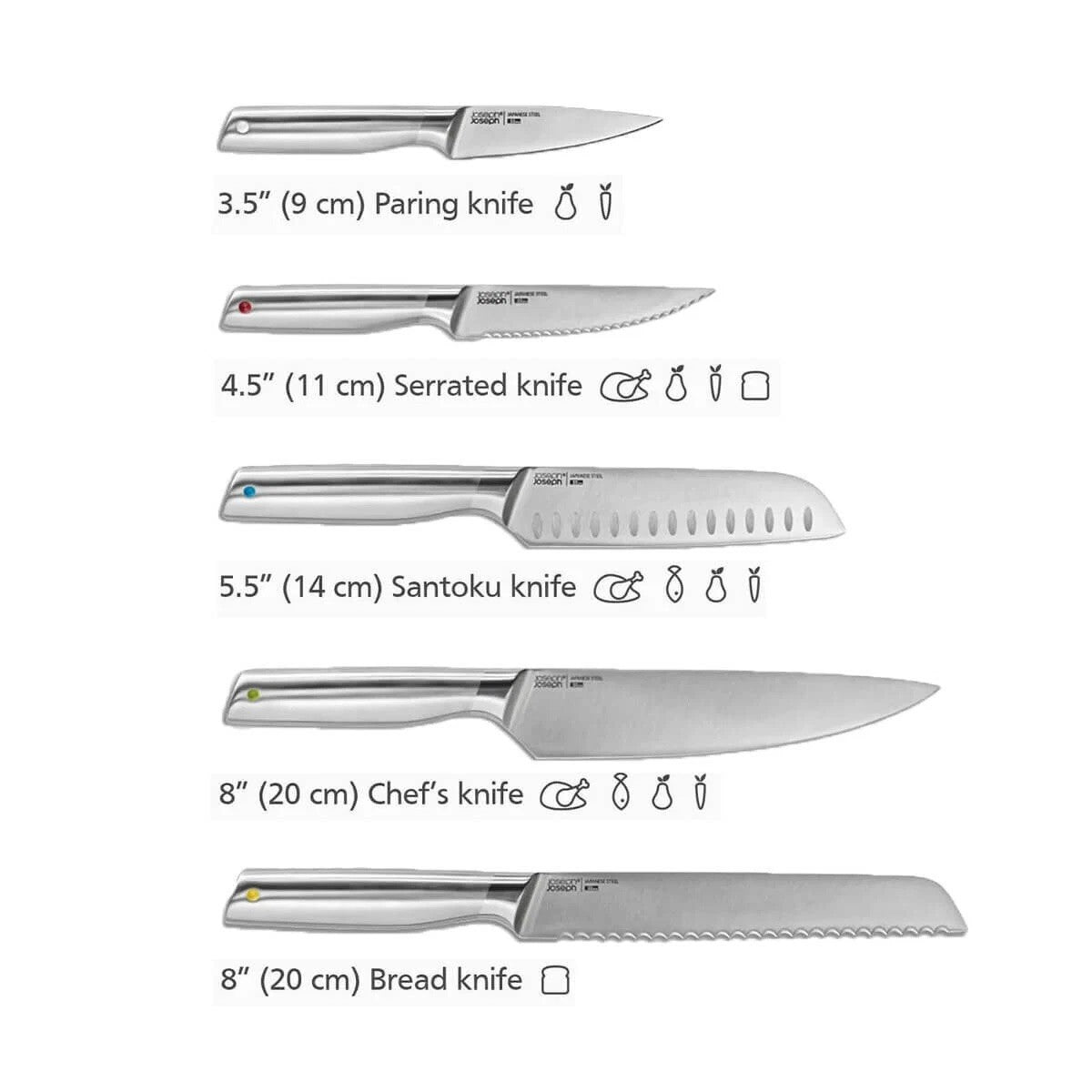Package Includes: Joseph Joseph Elevate 5 Piece Knife Set with Bamboo Storage Tray