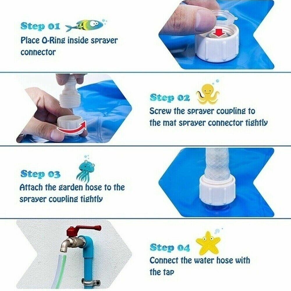 Kids Splash Sprinkler Water Play Pad Mat Inflatable Spray Pool Toy 170cm - Asstd