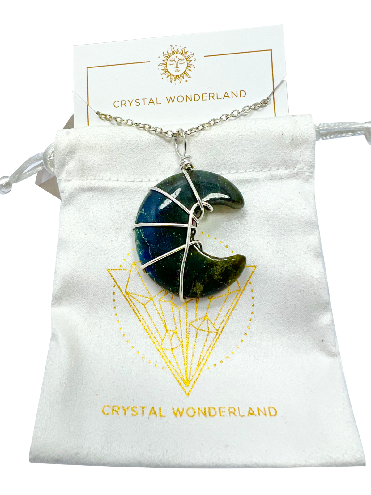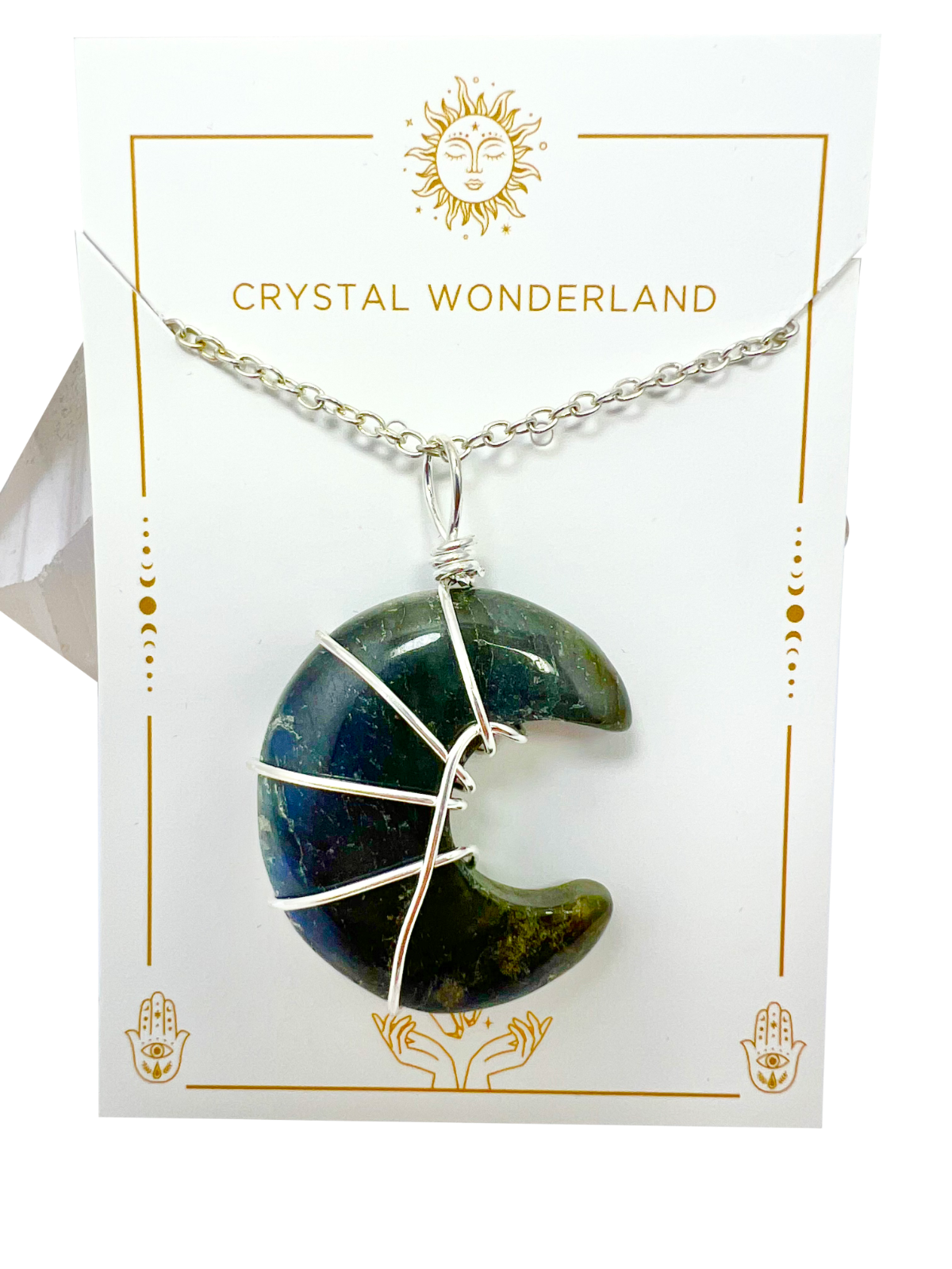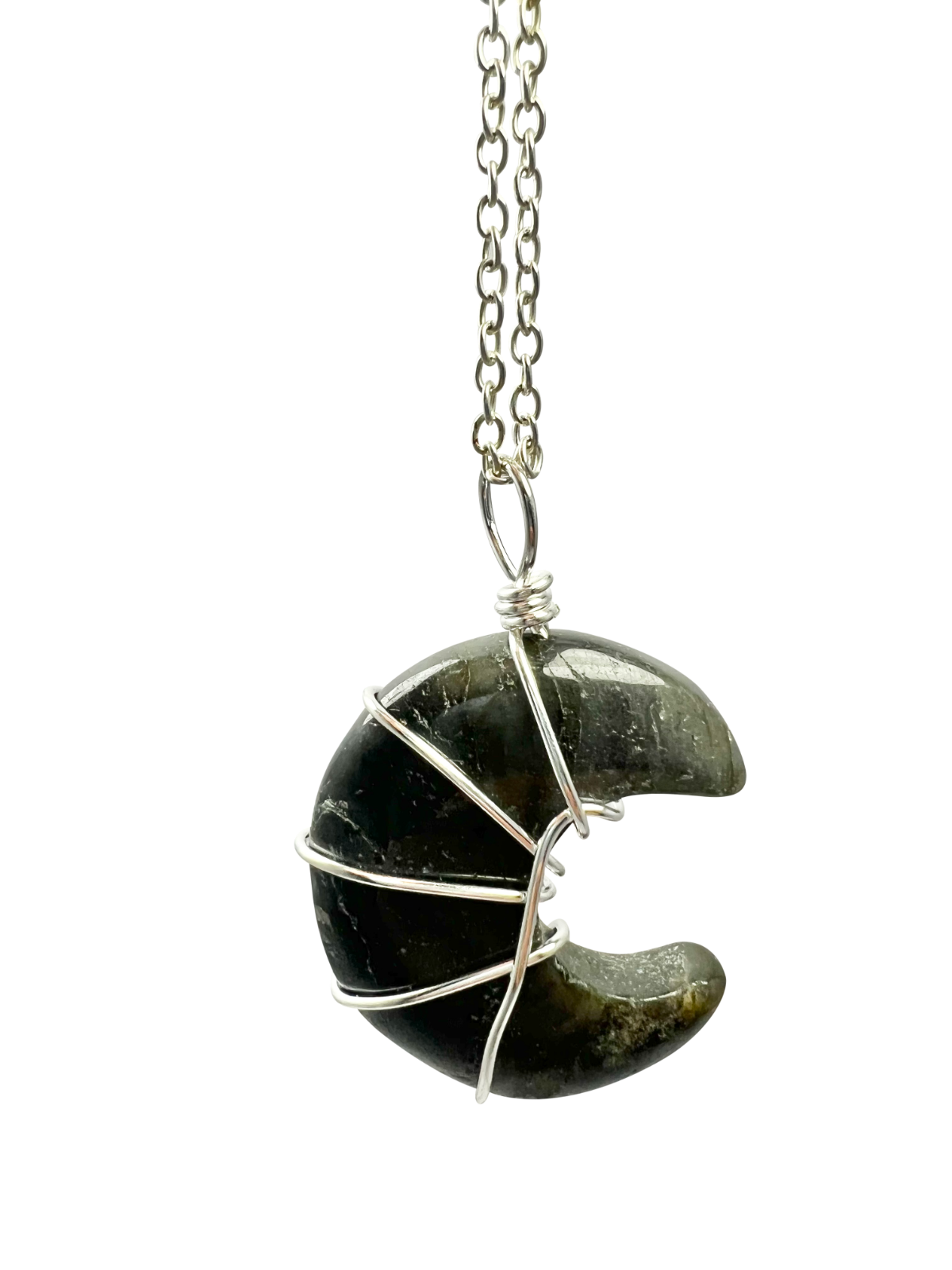 Labradorite Half Moon Shape Pendant Necklace Silver Healing Polished Tumbled