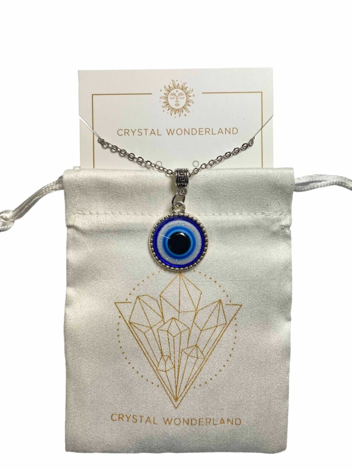 Large Evil Eye Pendant Necklace Silver Lucky Protection Success Eye Talisman