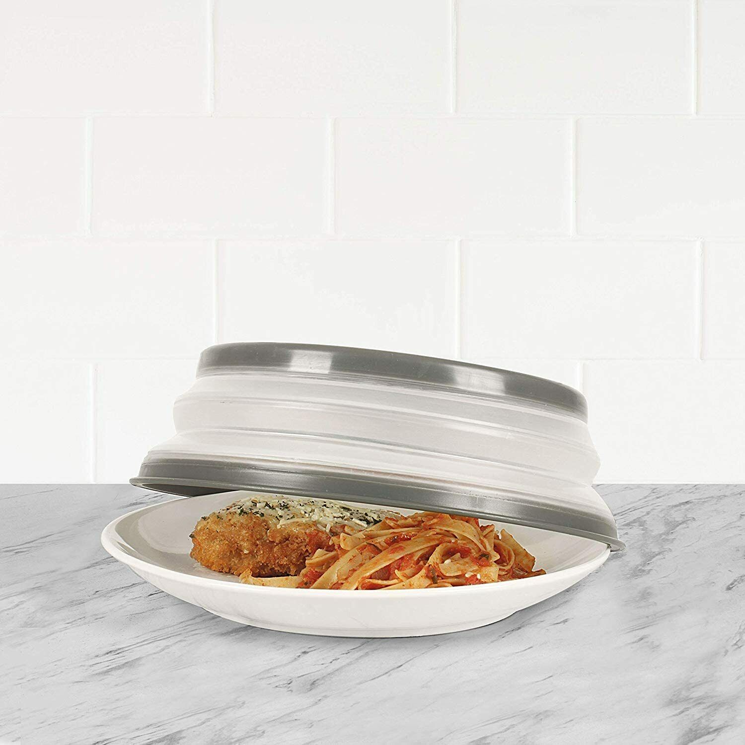 Have you ever microwaved something that exploded? We're talking strictly food here, but we suppose to the more adventurous of you, this still applies. Food splatter causes an awful mess and cleaning up is a nightmare. So when you put things in microwaves, you've got to cover them. But if you cover them and don't let steam escape, then you build up pressure and risk destroying your meal. This microwavable plate cover protects against food splatter, lets steam escape, and collapses down for easy storage. And most importantly, it's black! Tovolo Collapsible Microwave Food Cover helps keep food moist and keeps the inside of your microwave clean by preventing splatter. The vented holes allow steam to release evenly, preventing condensation. Designed to fit standard-size plates, yet stores easily, because it is collapsible. An absolutely essential kitchen tool.