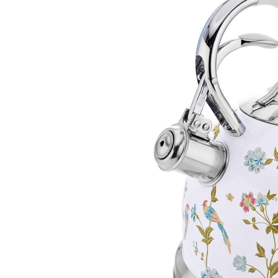 The multi-stove compatibility ensures you can use it with any stovetop and the food-grade safe stainless steel keeps your water fresh and clean. The easy-open spout and spring-loaded lever make pouring a breeze, while the hand-applied Laura Ashley Elveden designer print adds a touch of style to your kitchen.