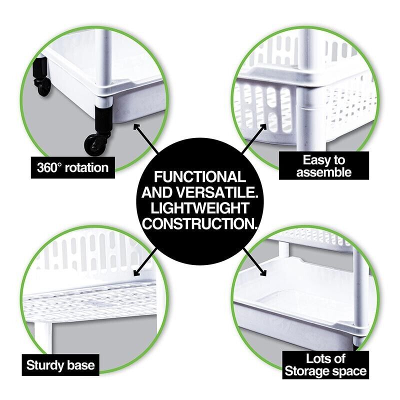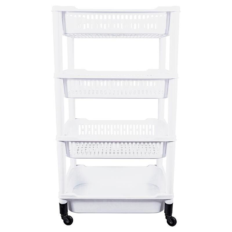 This fantastic and multi-purpose 4-tier storage cart with its crisp white finish is a versatile and functional cart, that is perfect for use in‚ kitchens, bathrooms, garages, laundries, and more. Lightweight and durable it is simple to assemble, offers lots of storage and has a sturdy structure with 360-degree rotating castor wheels.‚ Store anything you desire and move it anywhere you need!