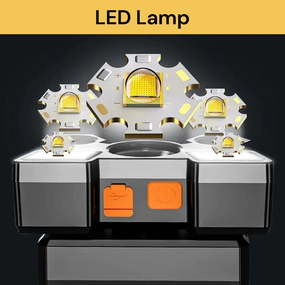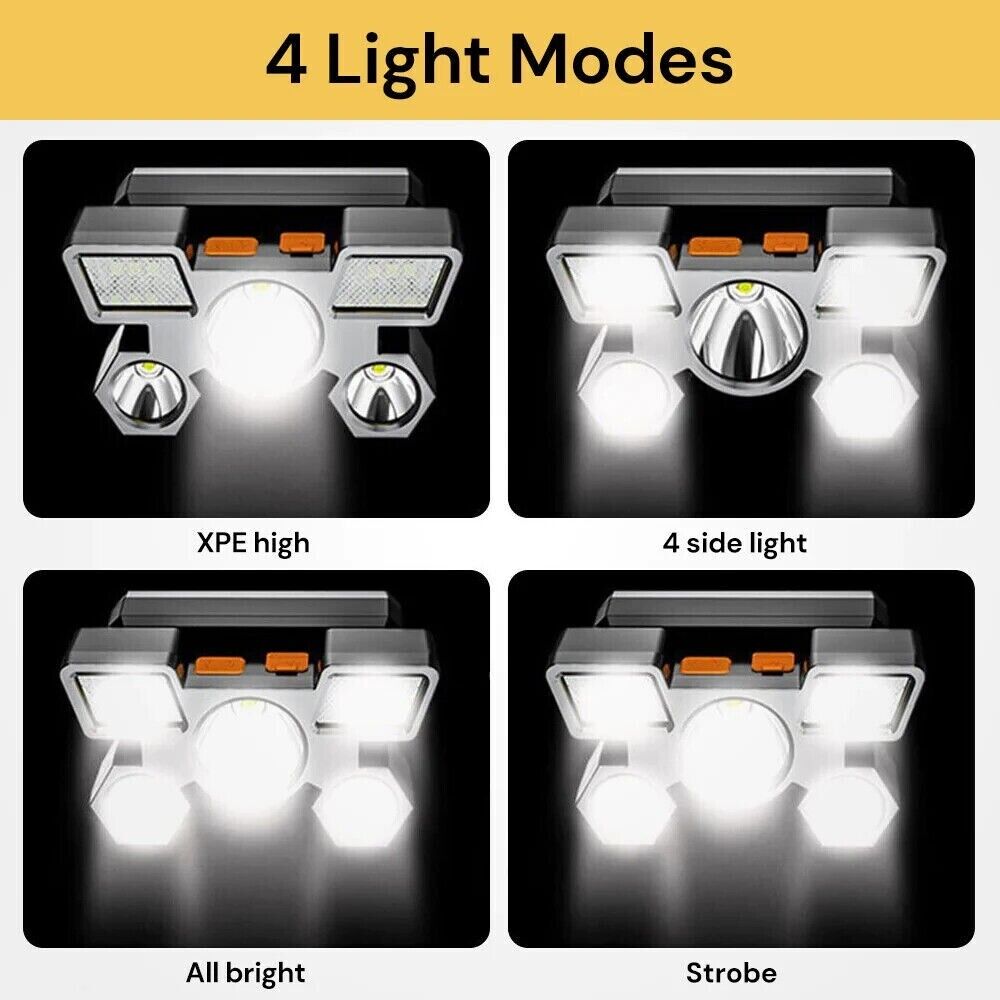 4 lighting modes available, ON/Main light/Side light/Strobe, the rechargeable 1200mAh battery last long for usage.
