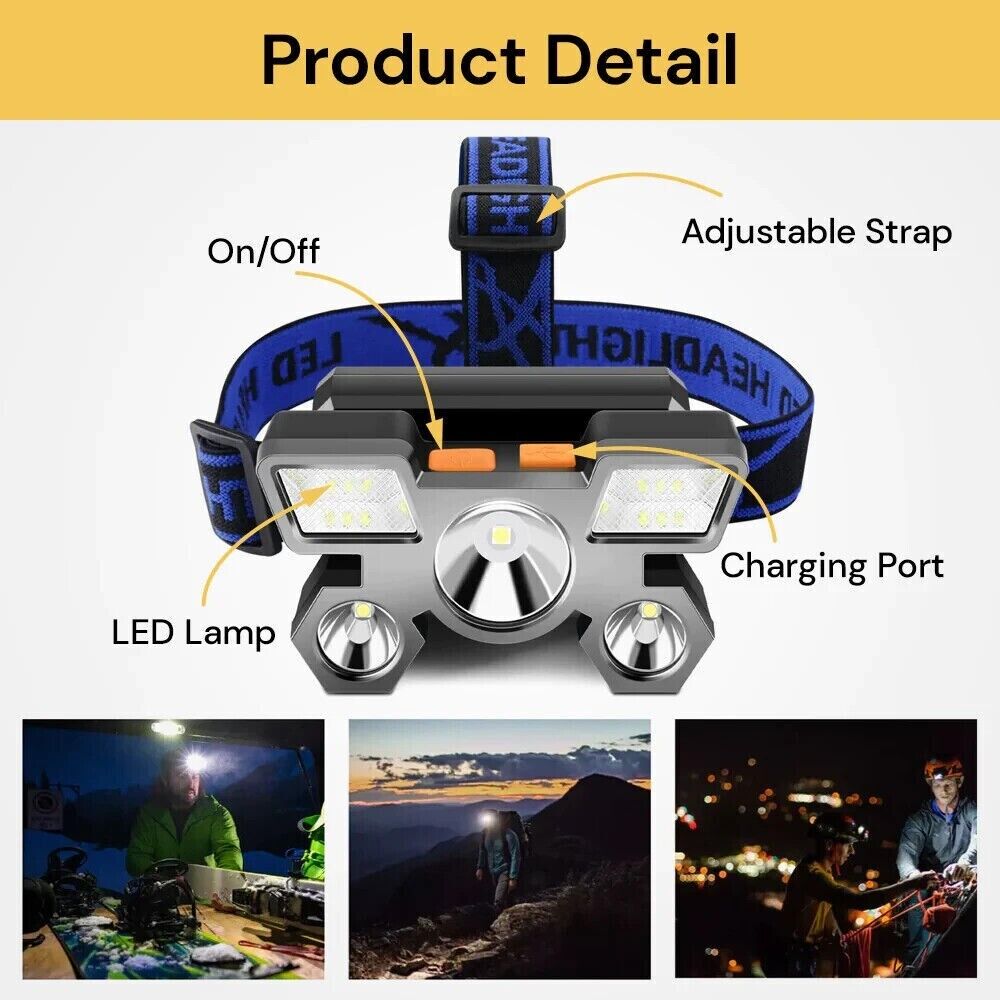 LED Head Light Torch Headlamp USB Rechargeable Flashlight Fishing Lamp Camping