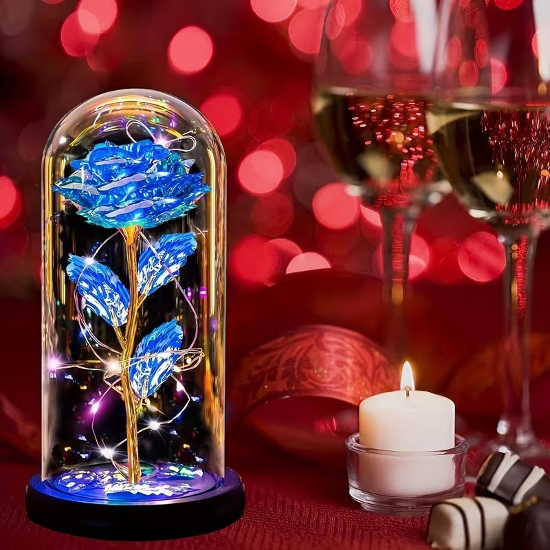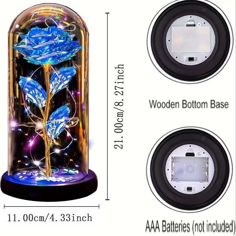 Led Rose Night Light with Golden Foil Accents Elegant Acrylic Flower Lamp Decor