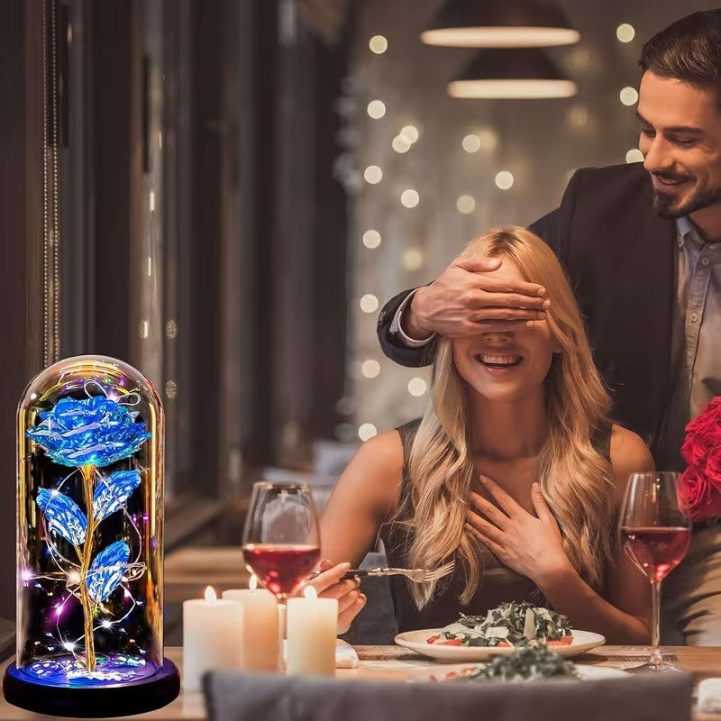 Create a warm and romantic atmosphere with this elegant LED rose night light. Featuring delicate golden foil accents and a beautifully crafted acrylic flower design, this lamp adds a soft glow that enhances any space. Perfect for gifting or as charming home décor, it suits both everyday use and special occasions.