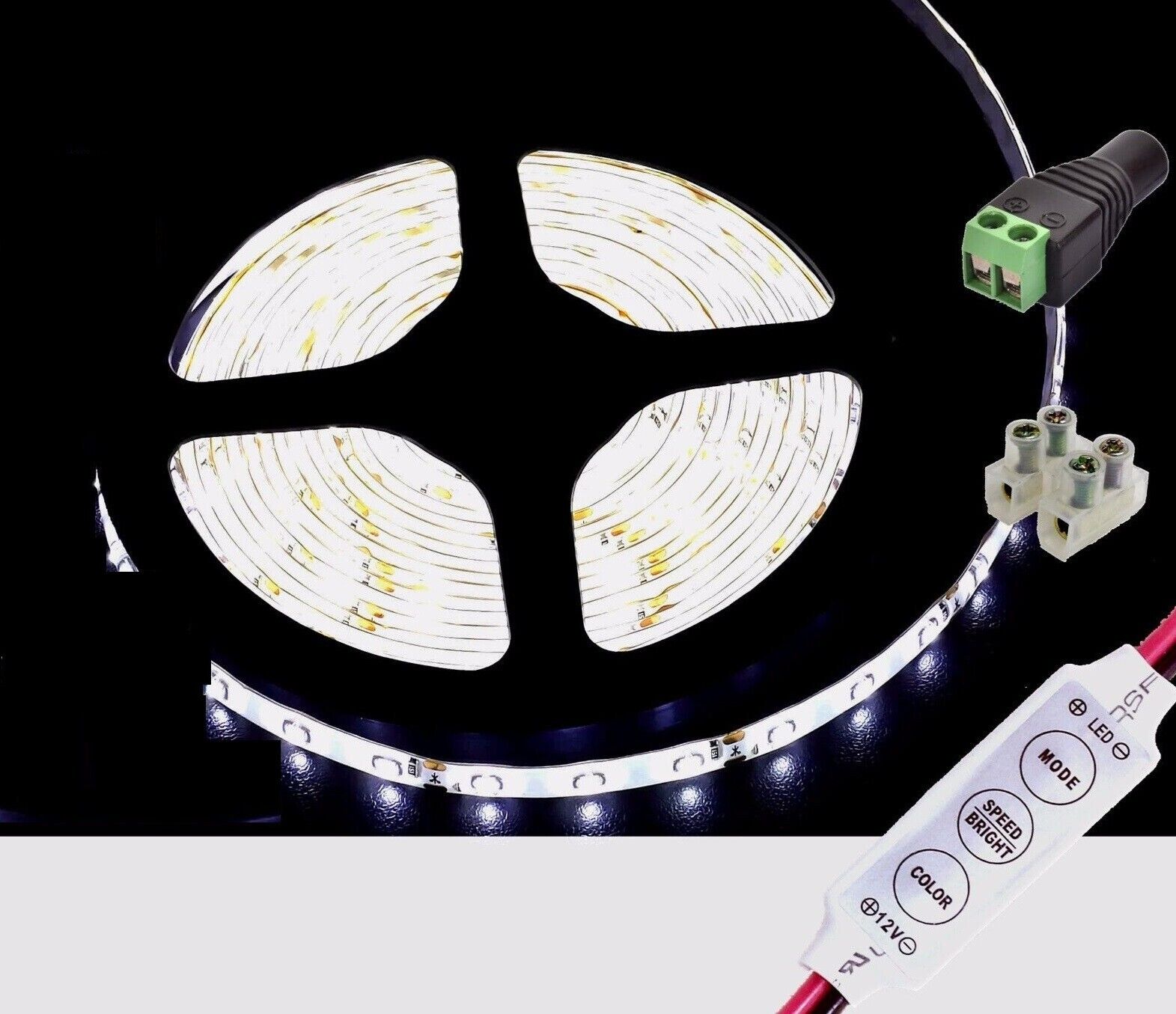 LED Strips Waterproof 12V Cool White 3528 SMD 300Led Strip Lights Car Boat 5M